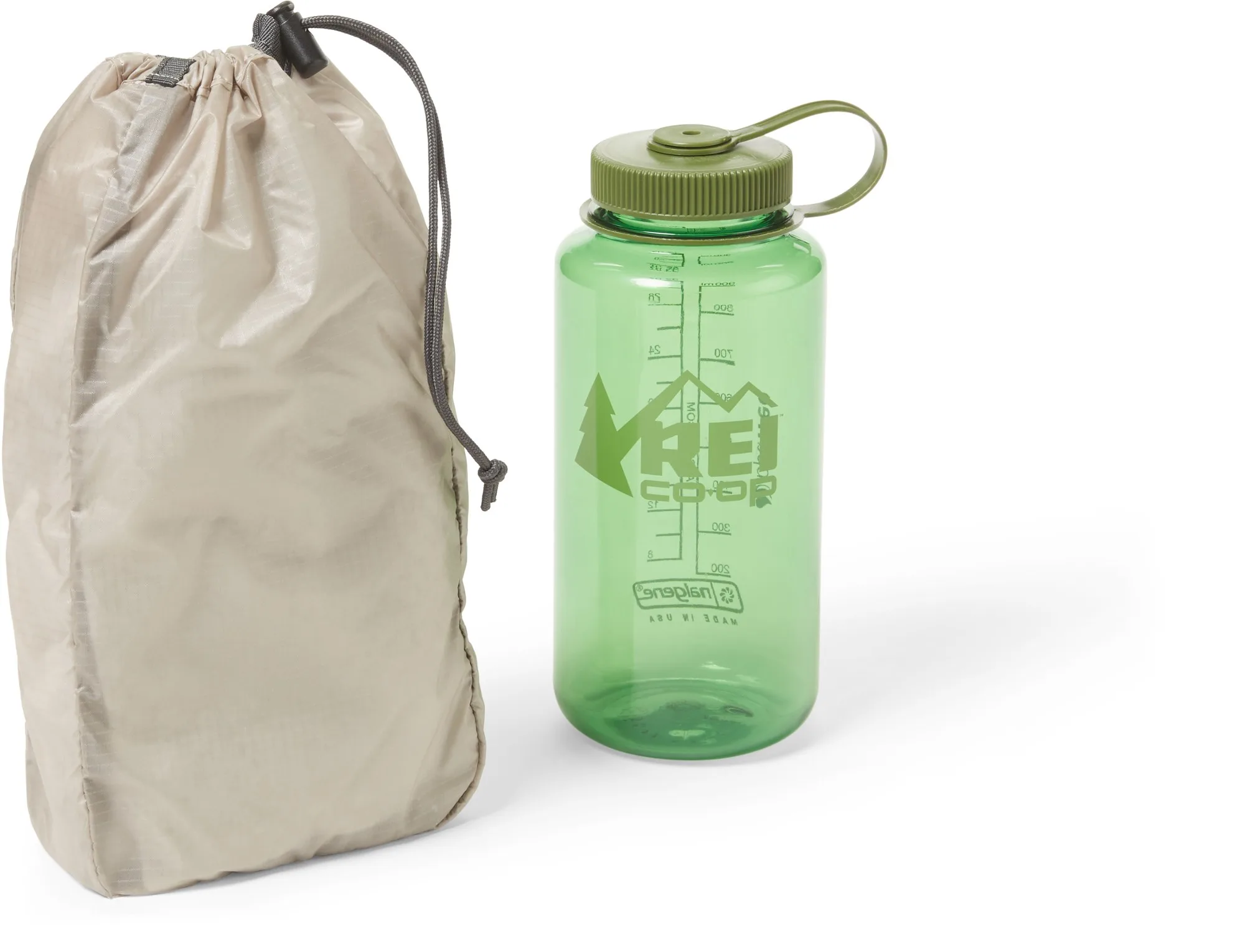 The bag includes a 1.25-liter zipper pouch that nestles into the bottom of the bag, and a stuff sack to help keep things organized.