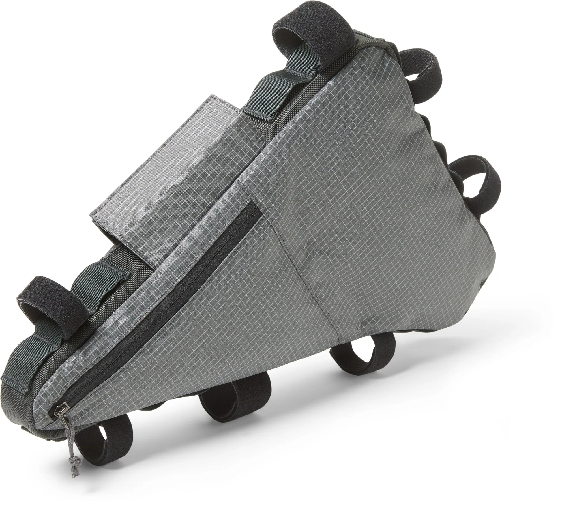 The REI Co-op Link Frame Bag provides a spacious, weather-resistant storage option that fills up the main triangle of a bike.