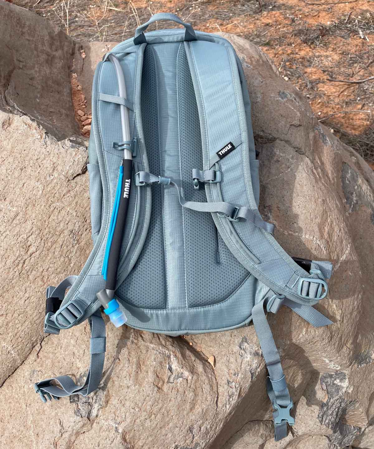 Thule’s Air Mesh back panel aims to keep you cool and comfortable on the trails. However, while that name might suggest a floating mesh panel, it’s not that deluxe. The back panel features two full-length pads that are perforated and breathable. The inside of the shoulder straps are lined with the same material, but the straps themselves are not cut out or perforated.