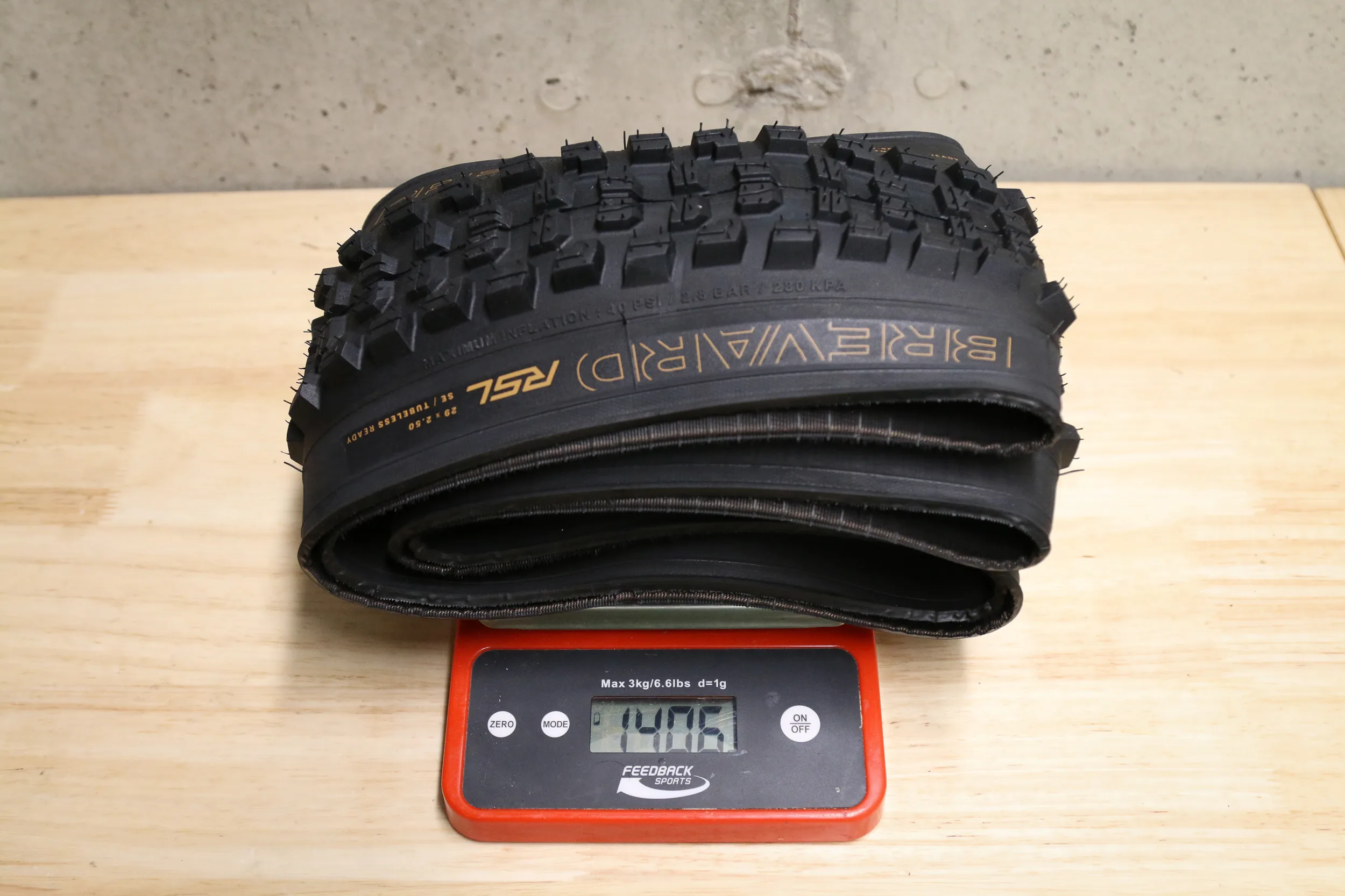 These tires have thick casings and a lot of rubber. As a result, they’re not super light at 1406g for the Brevard RSL SE 29 x 2.5, and 1414g for the Galbraith RSL SE 29 x 2.5.