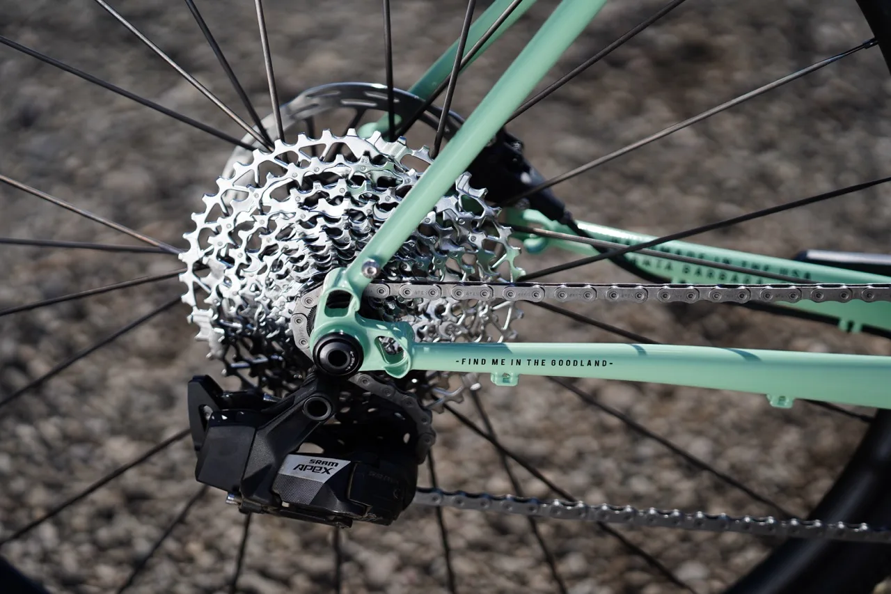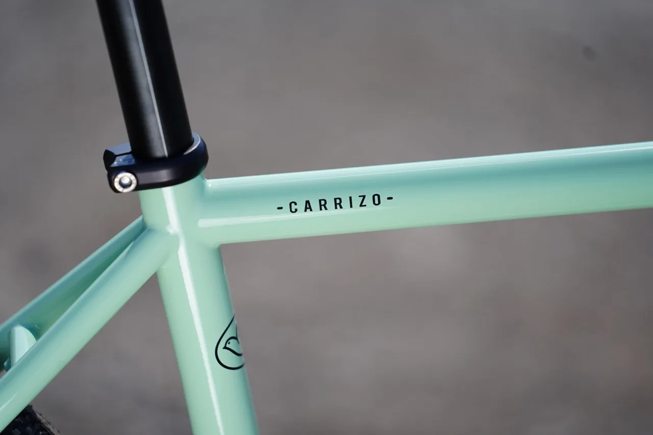 The complete Carrizo will sport a SRAM Apex AXS 12-speed drivetrain. The frame will be able to run 40mm tires, making it comfortable on paved, not-so-paved, and dirt roads.