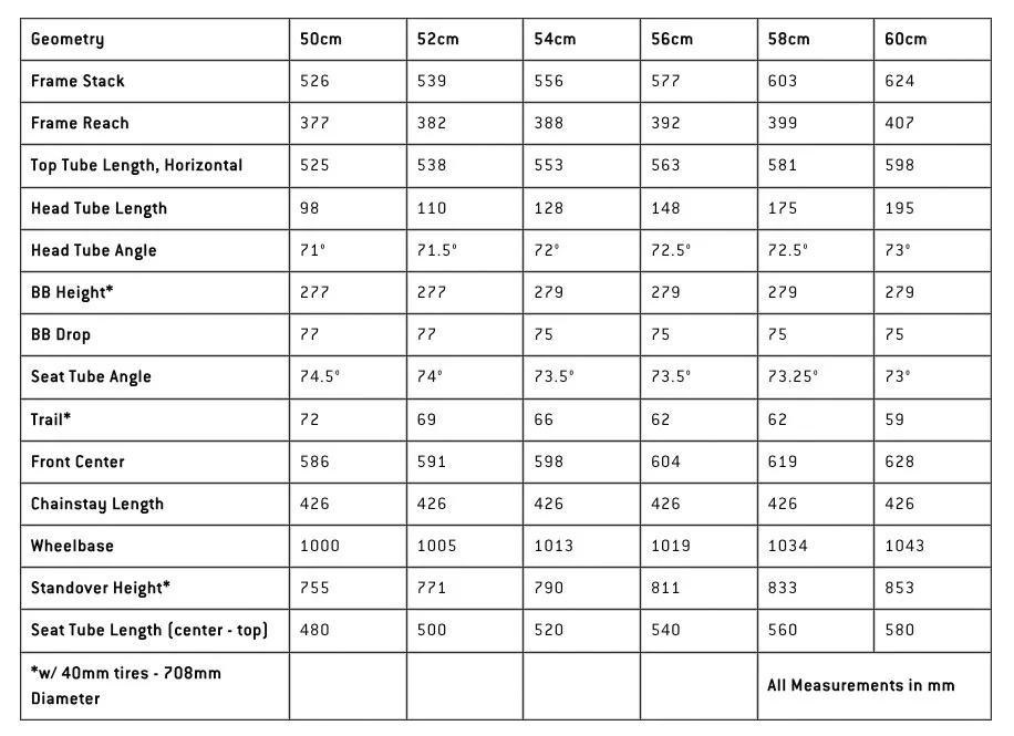 Sizes: 50cm, 52cm, 54cm, 56cm, 58cm, and 60cm\