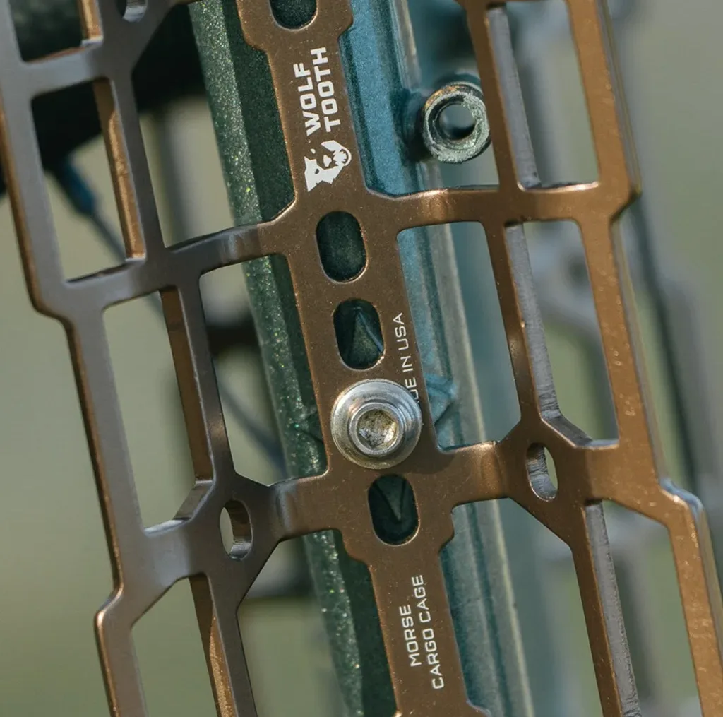 Minnesota machining Masters, Wolf Tooth Components (WTC), have added four fun colors to the Morse Cargo Cage line. The Morse Cargo Cage is unique in that it carries the same dot-dash mounting system as WTC’s uber-popular Morse Cage. This system allows for many mounting options for the user.