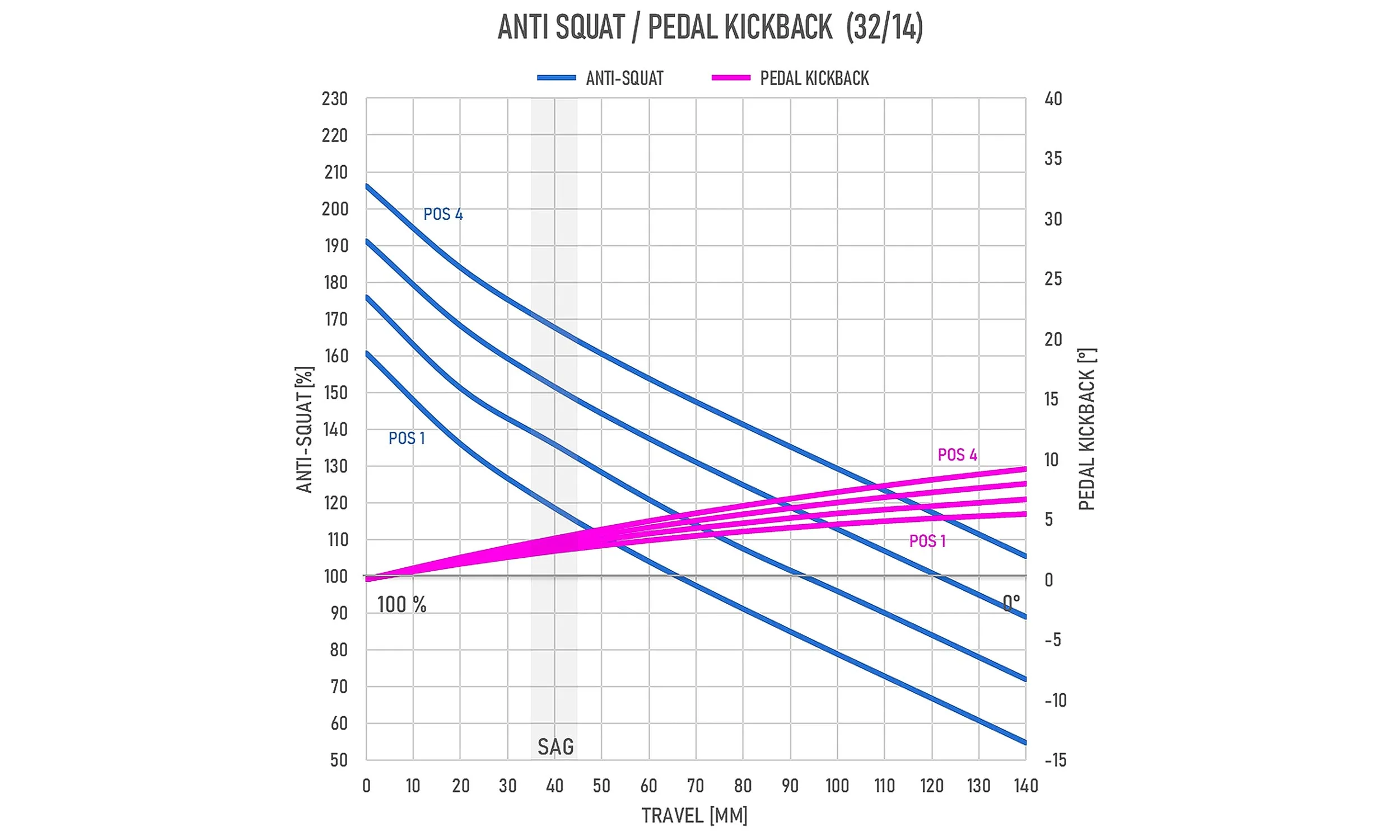 By minutely adjusting the height of the main pivot just above the bottom bracket users can significantly adjust the anti-squat response of the suspension, while fine-tuning the pedal kickback curve, as well. This lets riders easily adjust how lively or planted the bike feels to suit their riding & pedaling styles. Read our summary of Anti-Squat here if you want to learn more on why it is great to be able to adjust it to your preference.