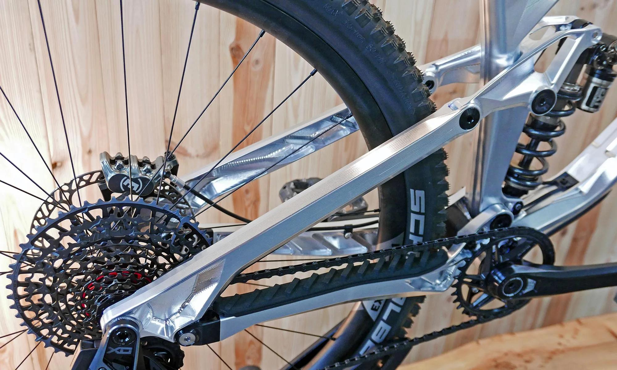 While the original I-Train used welded Nicolai seat & chainstays, now Actofive machines the entire bike in-house. The new stays feature intricately hollowed-out truss-like structures that you can see on their backsides. We got a preview of the new stays in our recent Actofive Factory Tour.