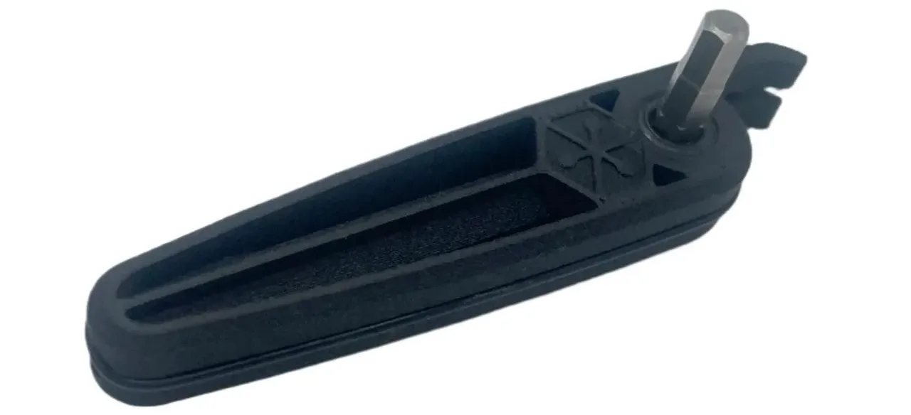 The Nano Worx Hook Lever Multi-Tool integrates a tire lever with three cleverly stowed tool bits in the handle. The bits are slid into the handle, one on top of the other. Once they are inside the handle the included o-ring is stretched around it to secure the tool bits.