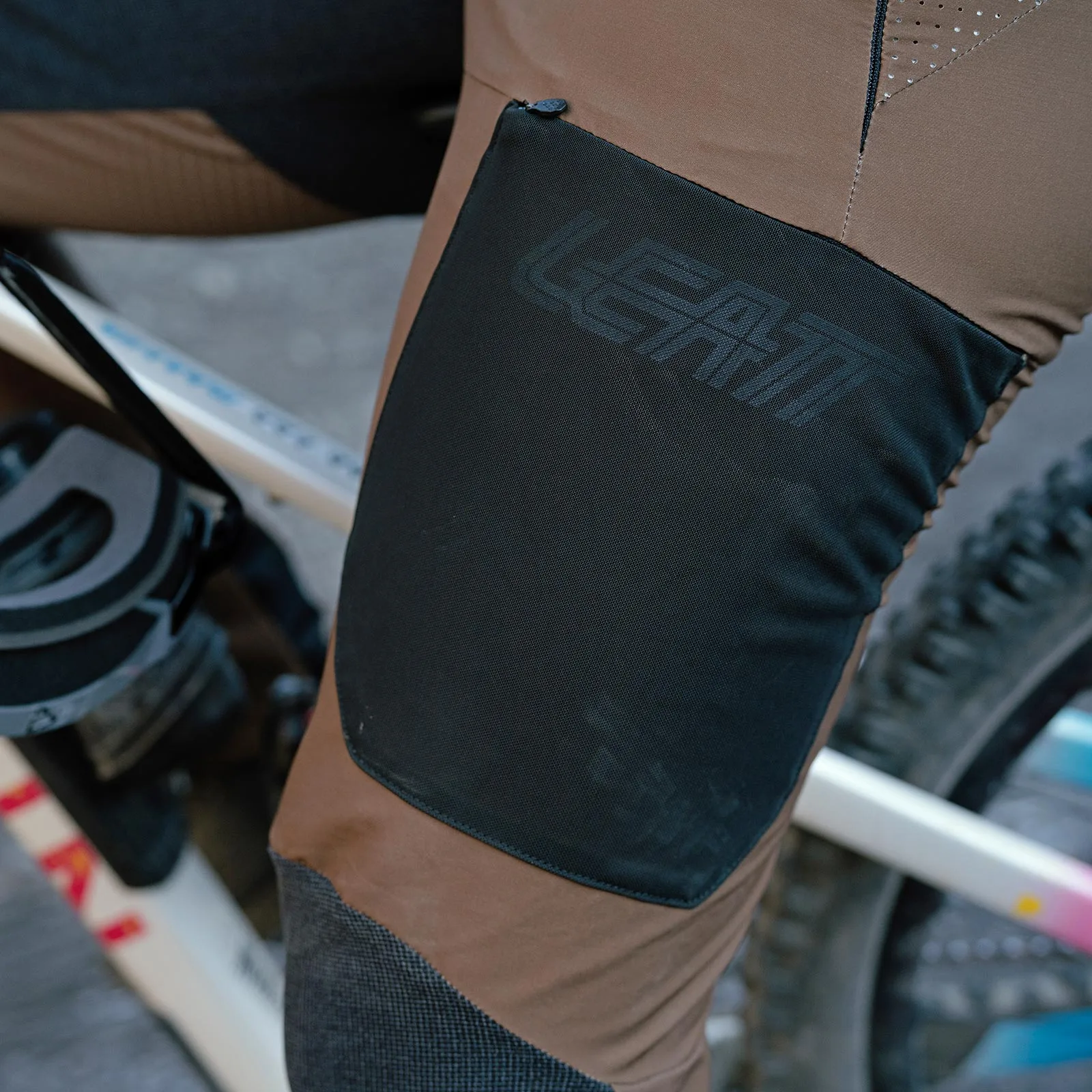 We already covered Leatt’s huge new move into MTB components in-depth this past July. There will be pedals, bars, stems, grips, and even a full-face-specific water bottle. All interesting new tech to geek out on with us. And at the time they teased us with new riding clothing too.
