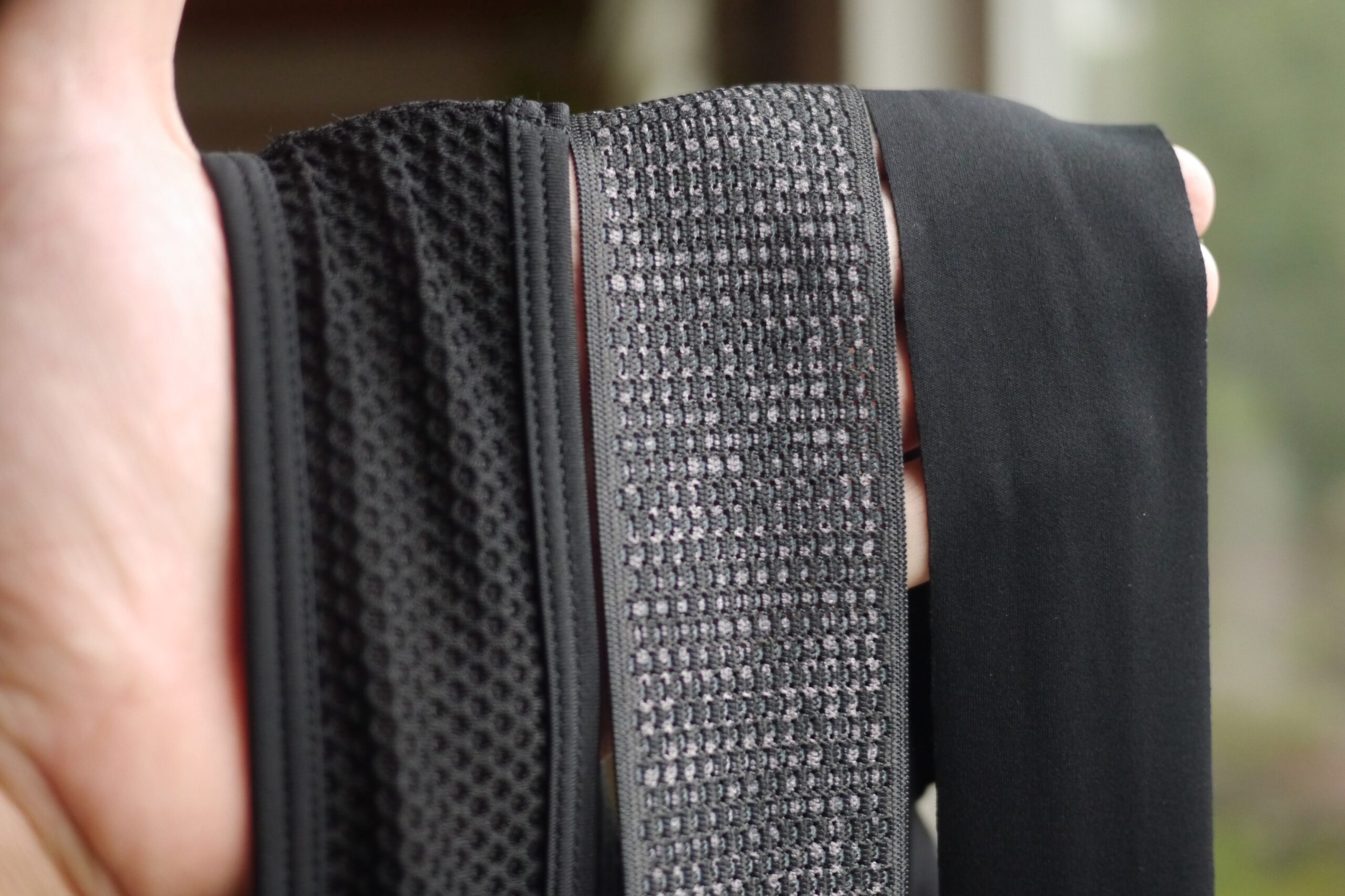 Bib straps come in a range of different styles and materials but they all strive to accomplish the same goal of keeping your bib tights in place. Some are made of mesh, some are made from the same material as the tights, some have trim sewn on the edges, and others have raw-cut edges. Regardless of their material and construction, they should feel comfortable when worn over a base layer or against the skin for extended periods.
