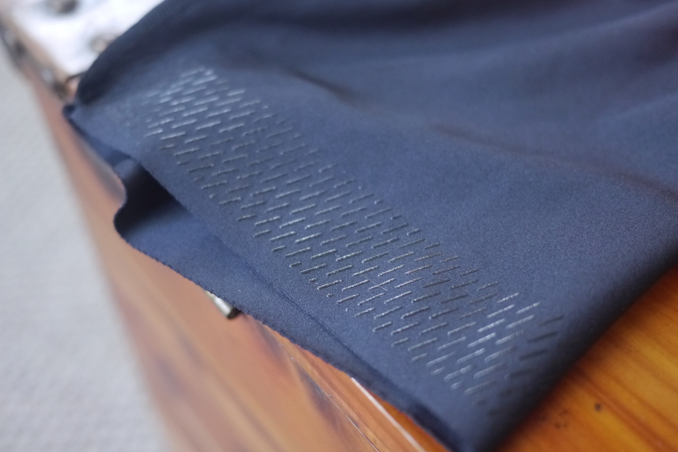 These panels then need to be stitched together and the stitching can markedly affect the fit and comfort of bib shorts. More advanced bib shorts will be constructed with less stitching, thanks to articulated and flexible fabrics, and more intelligent arrangement of the fabric panels that surround your body. Poorly placed stitching can result in puckered material or compromised fit and support, while less or better-oriented stitching will often provide a feeling of a second skin. Stitched seams are also one of the most common points of failure on bib shorts, because of the high degree of pulling and friction to which seams are subjected along with the significant stretch built into the fabrics used in their construction. Therefore, minimal and intelligently placed stitching is key for both comfort and the longevity of bib shorts. While significant stretchiness is required for bib shorts, this stretch must be balanced with durability and support. More advanced fabrics balance all three of these demands and also evacuate moisture rapidly during intense efforts in warm conditions.