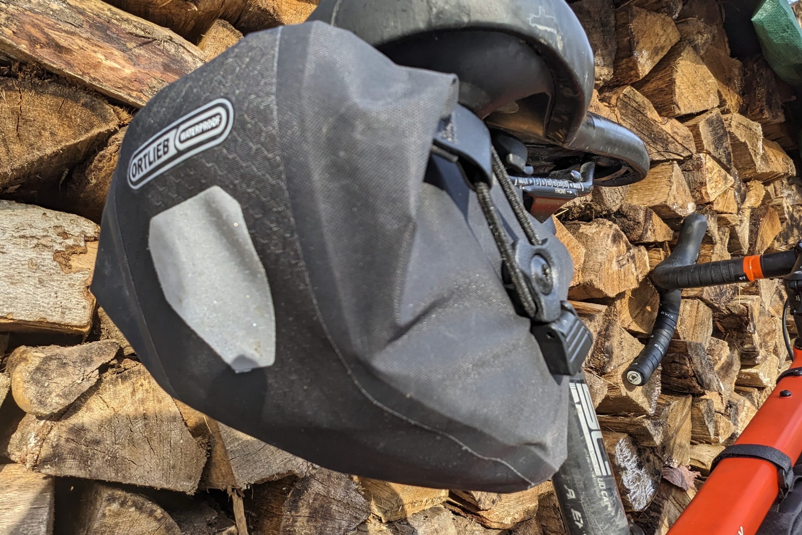 Saddle bags claiming to be waterproof are generally made with a material that’s been coated to repel water and feature sealed seams to prevent water ingress. They may have waterproof zippers, but drybag-style roll tops are another common way of sealing up the opening. The three waterproof models we tested are the ToPeak Wedge DryBag, the Ortlieb Micro Bag Two, and the EVOC Seat Pack Boa.