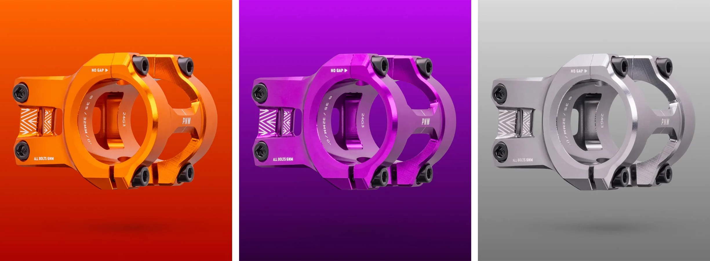 The new PNW Loam stems sell for $99 / 112€, no matter what size or color you need. And all are available and in-stock now. The stems come in Blackout black, Lightning silver, Blood orange, or Fruit Snacks purple.