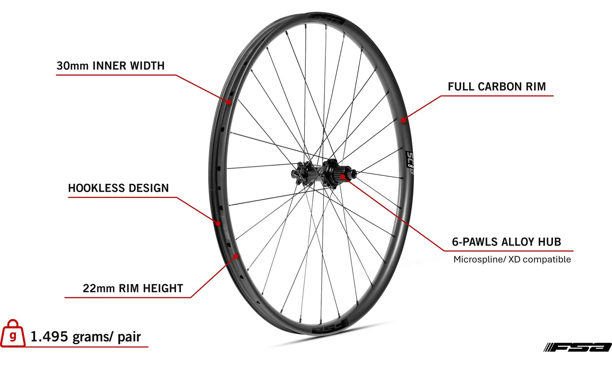 FSA SCi30 lightweight carbon all-mountain bike wheels